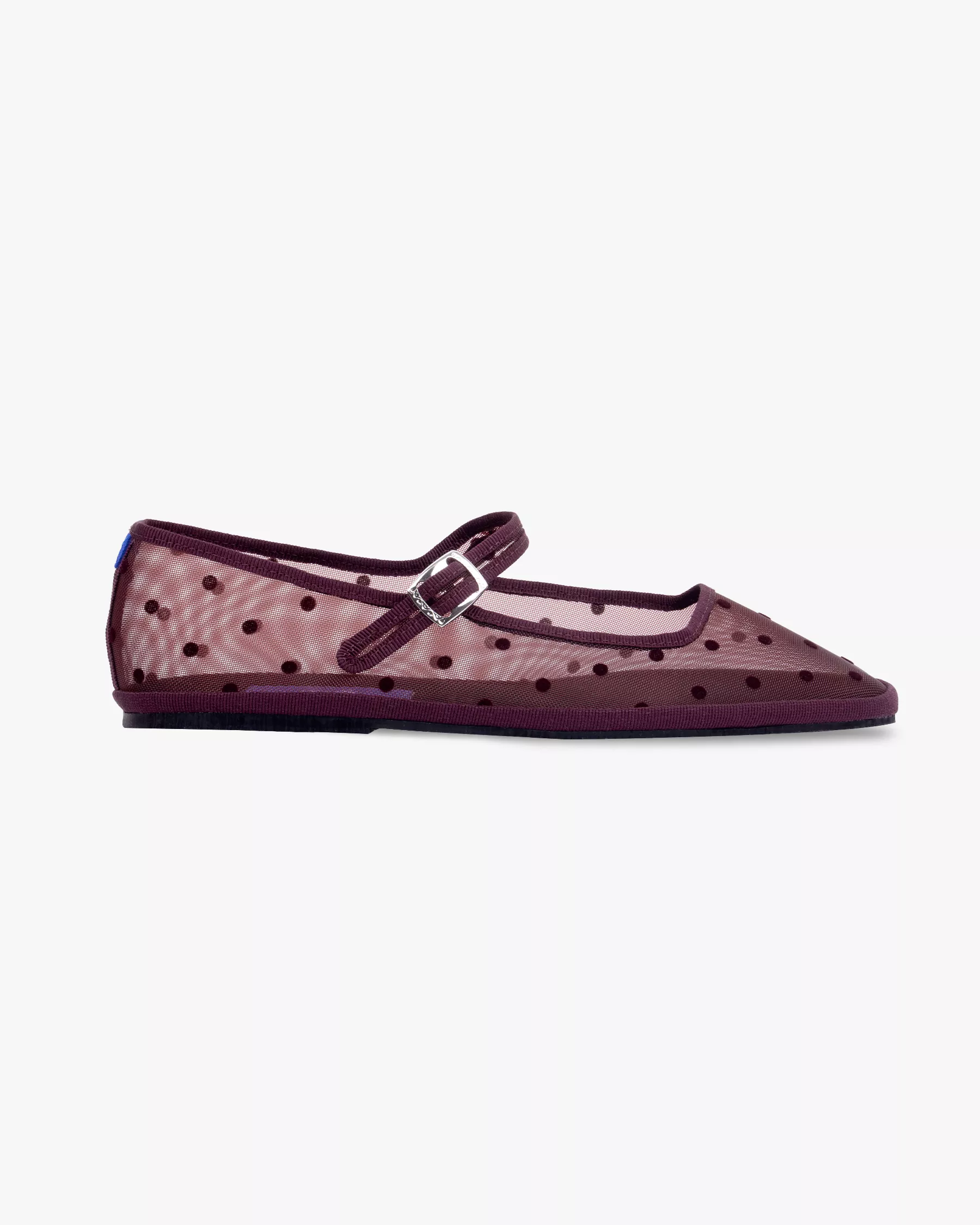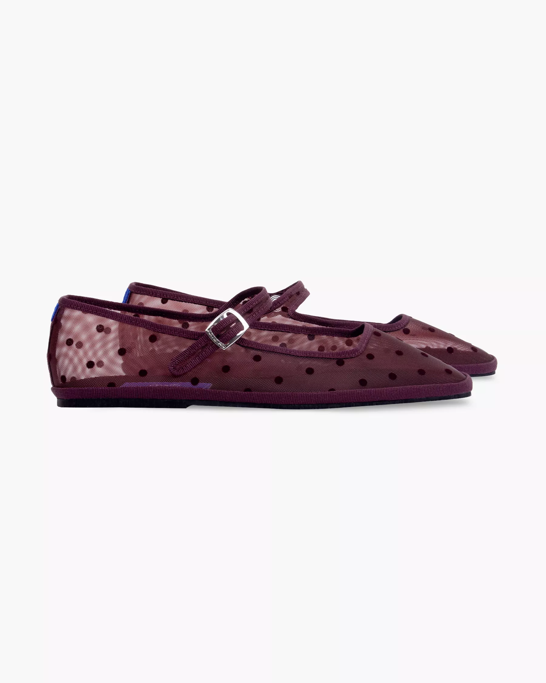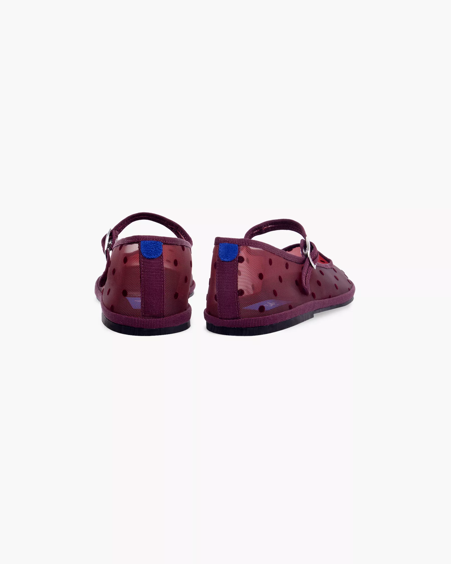 Furlanes Mary Janes in Burgundy mesh with dots pattern and square toe