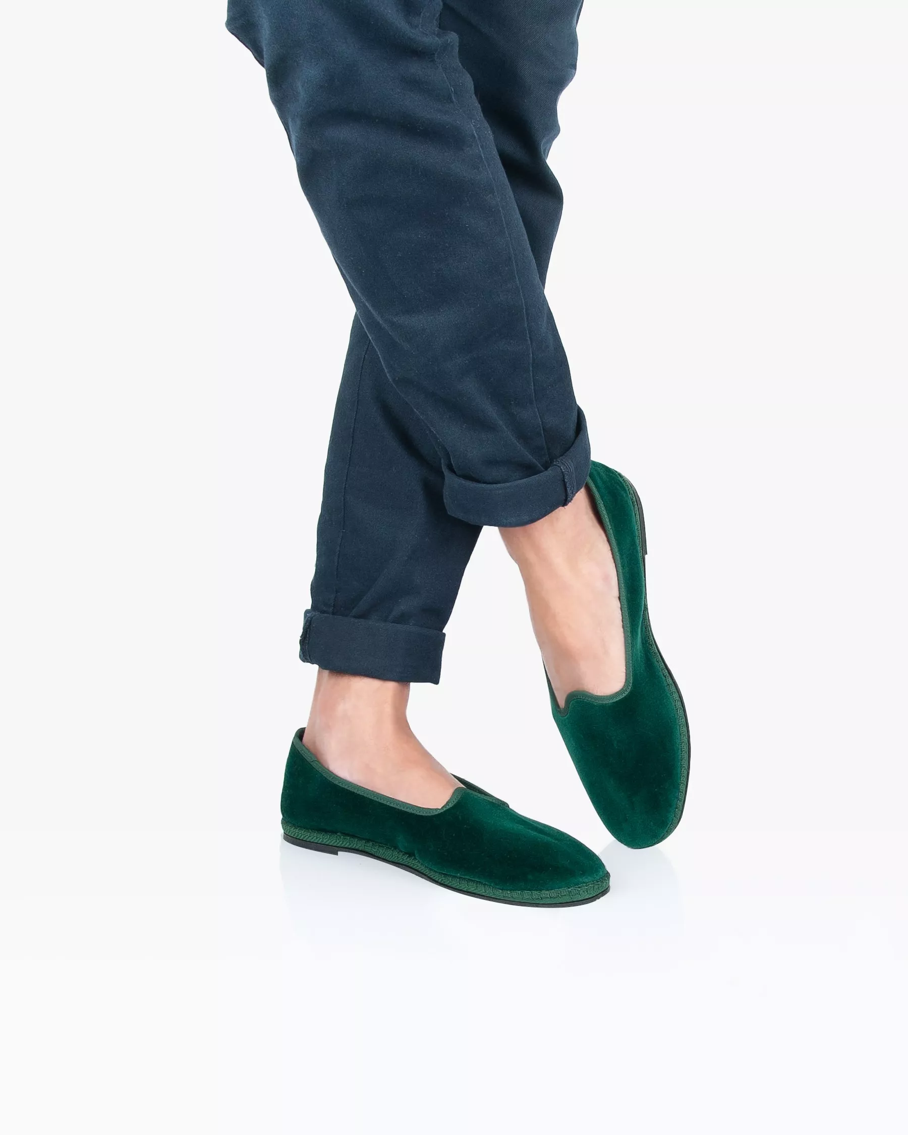 Warning: Water may alter the sheen of the velvet / suede. It is recommended to waterproof these slippers.