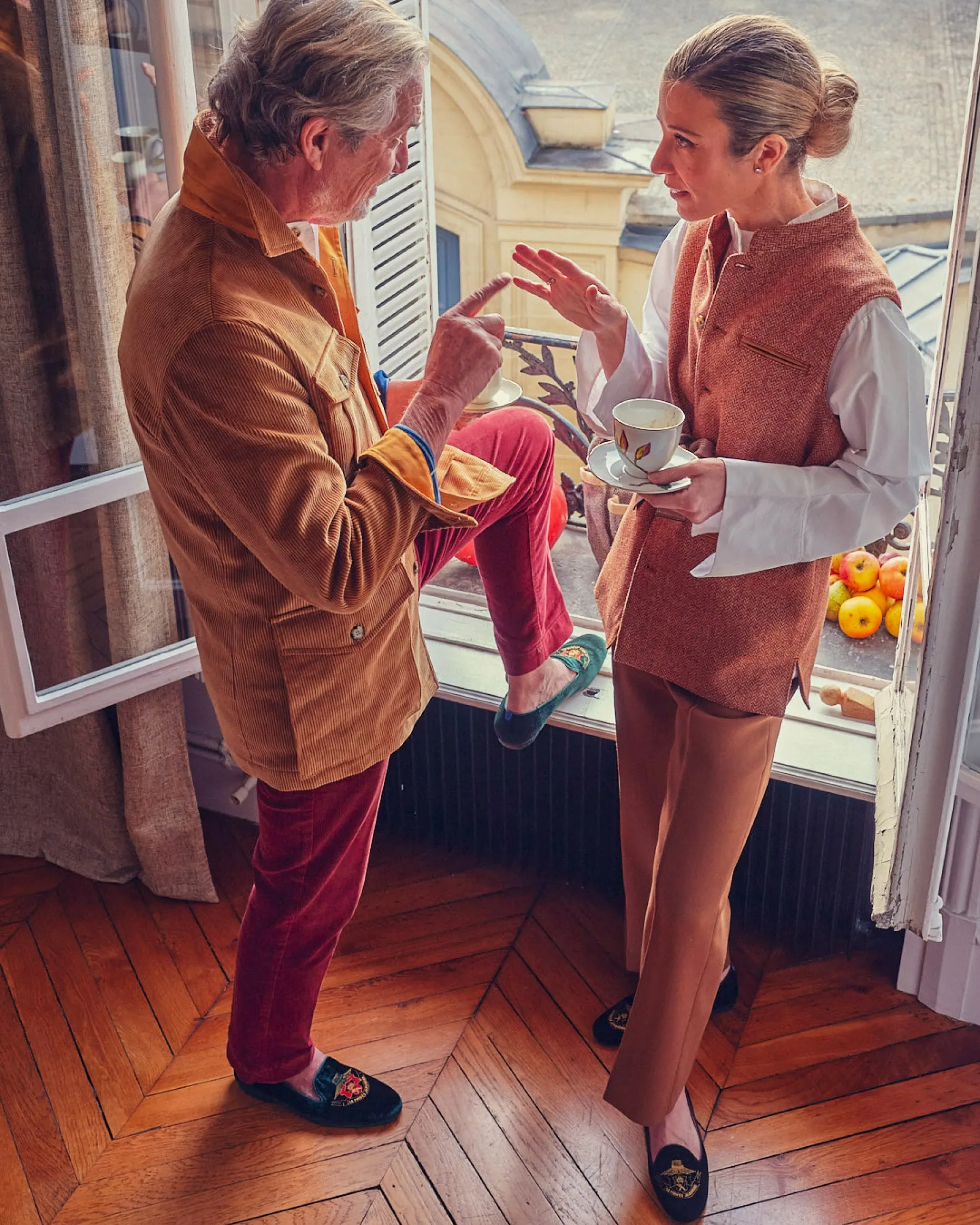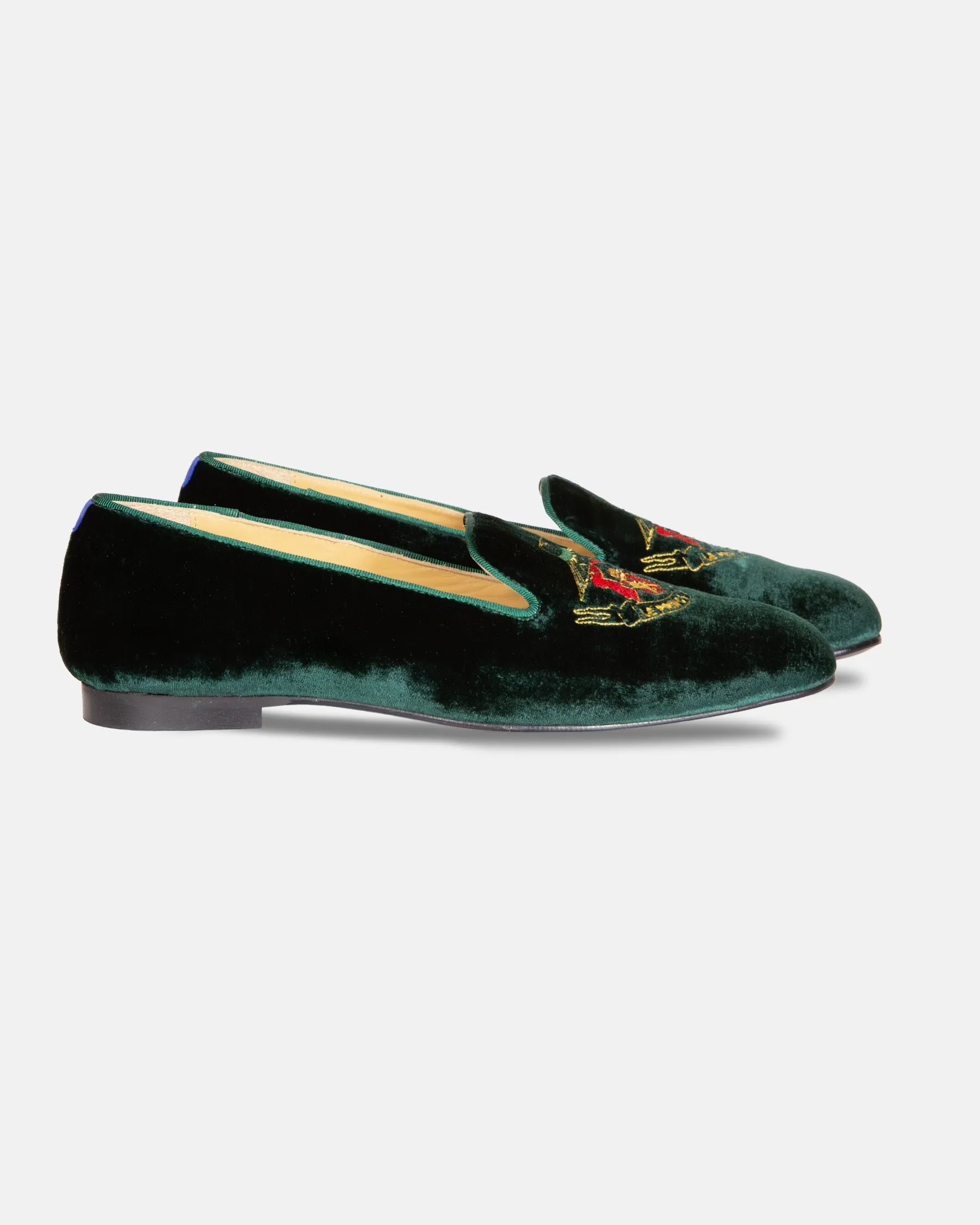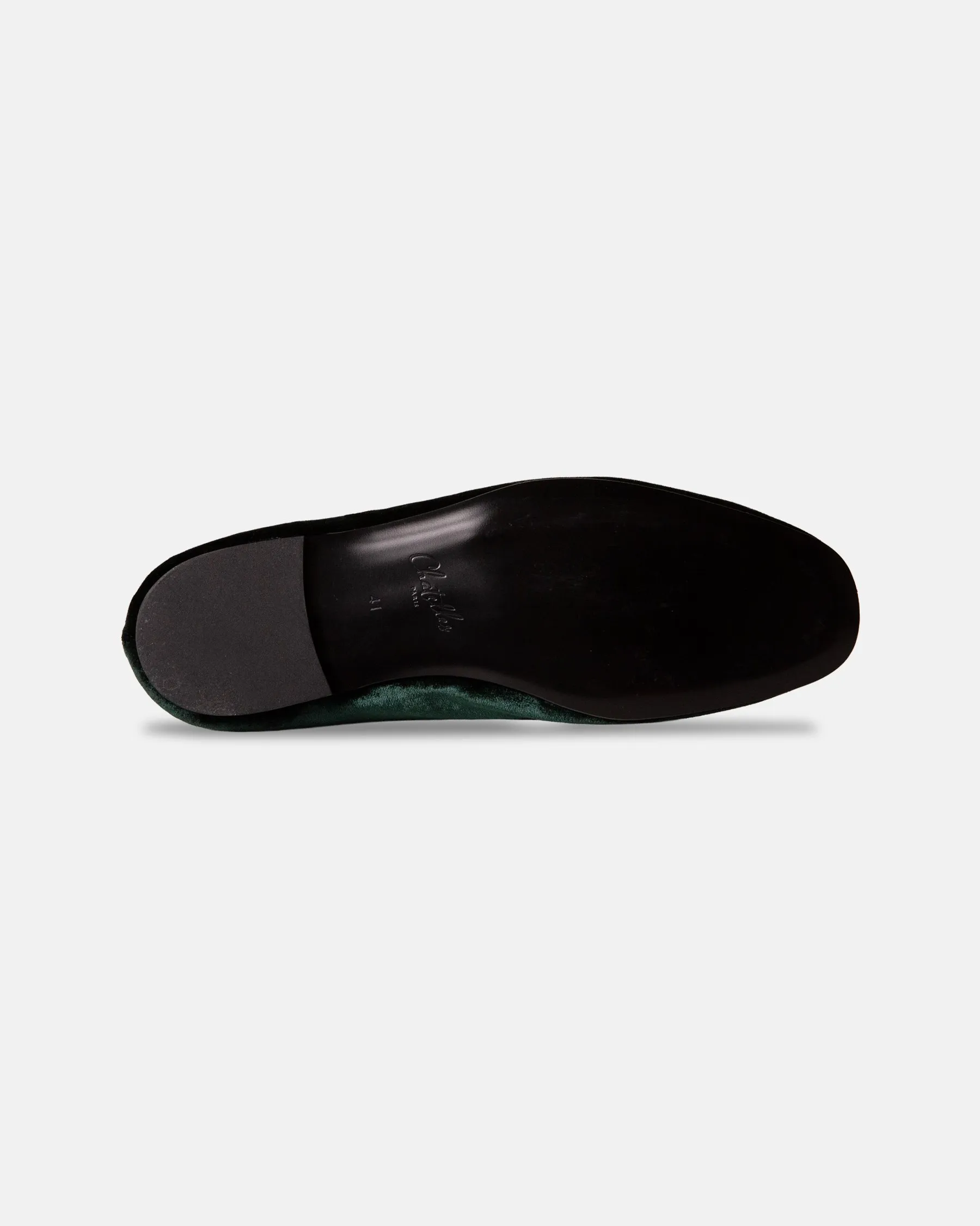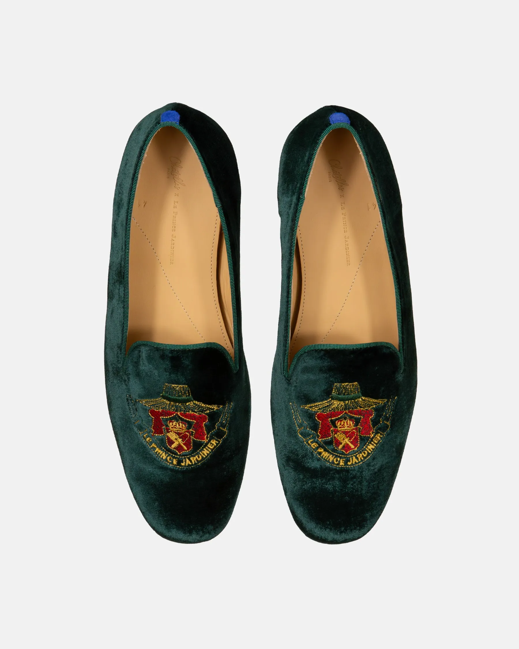 Men green velvet slippers with Le Prince Jaridnier embroidery