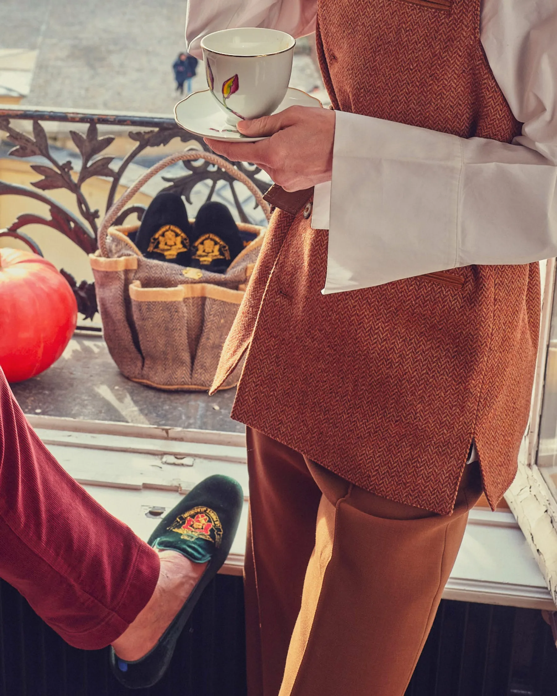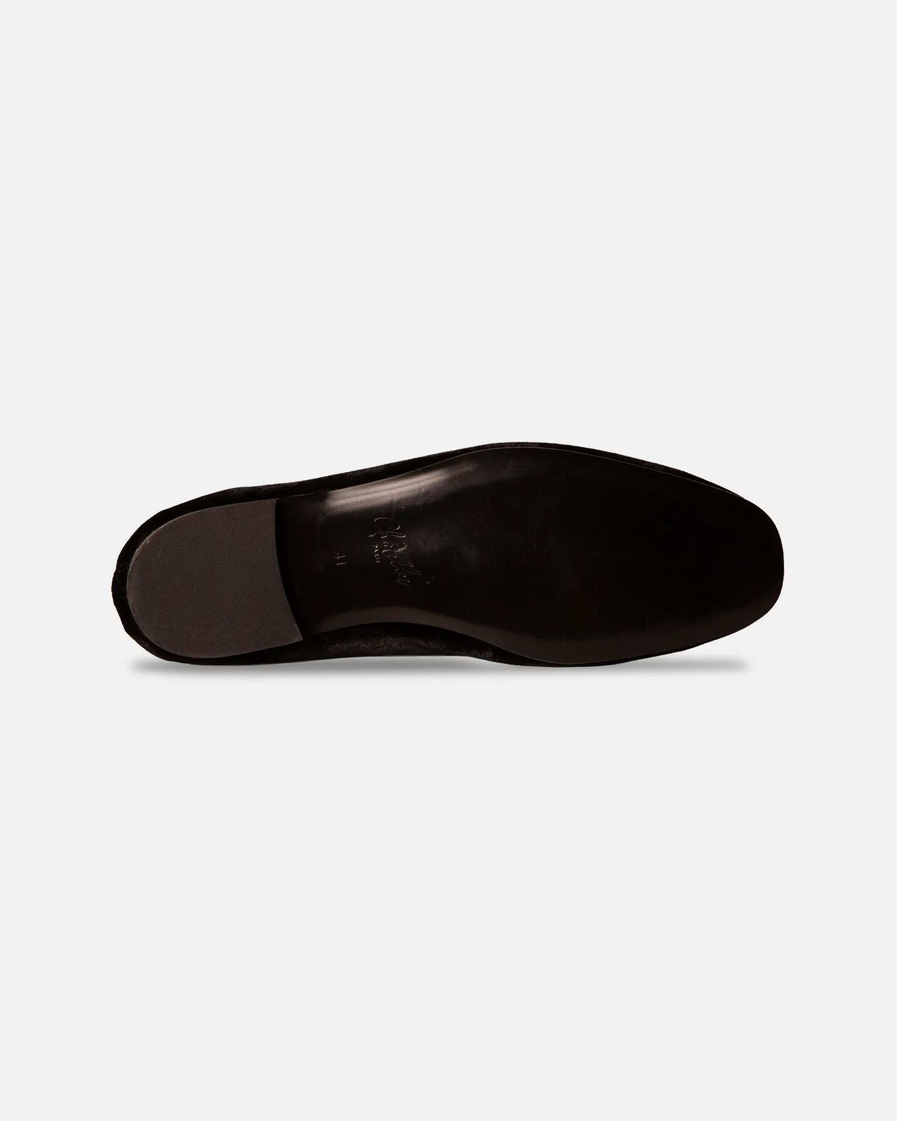 Men black suede slippers with Le Prince Jaridnier embroidery