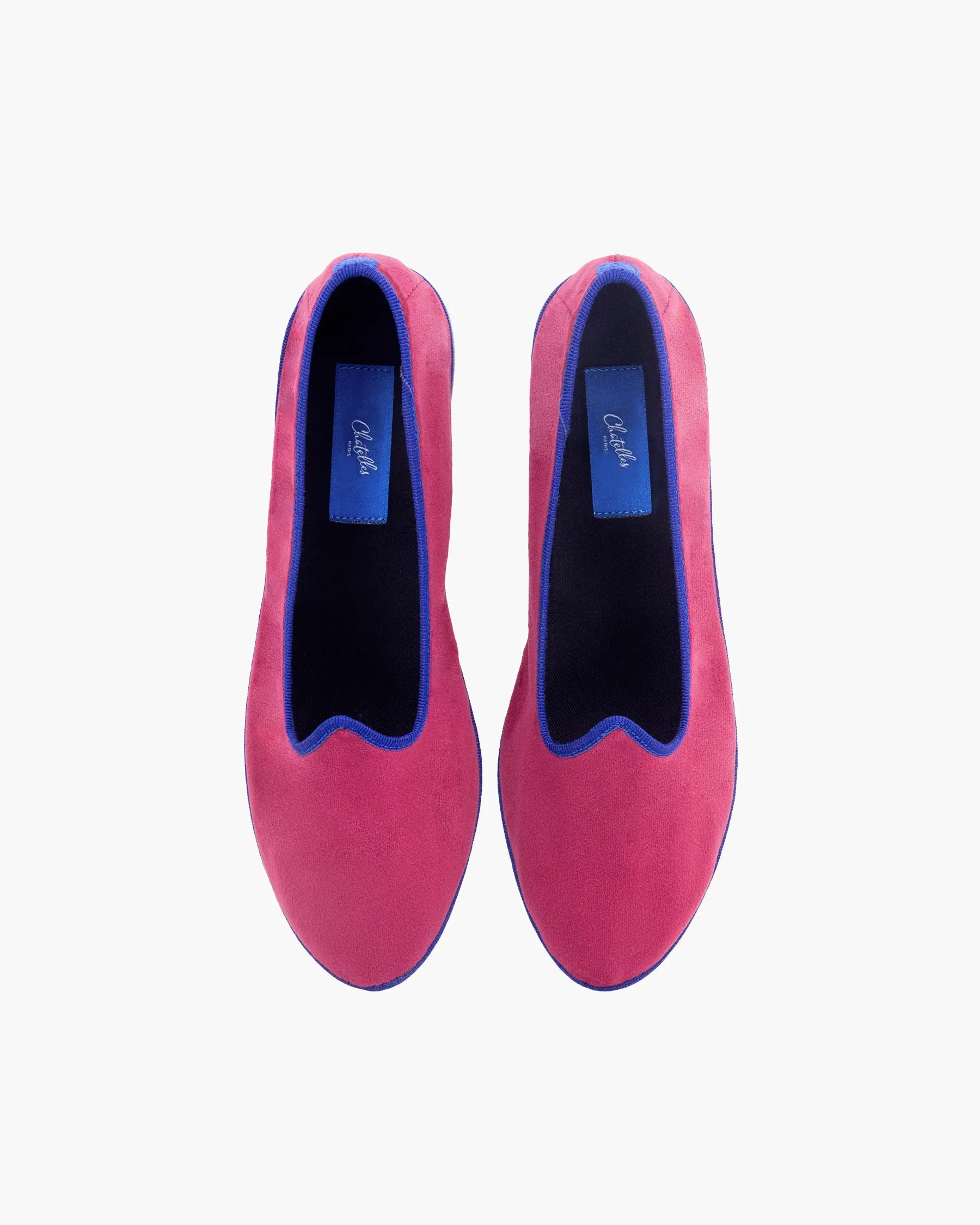 Warning: Water may alter the sheen of the velvet / suede. It is recommended to waterproof these slippers.